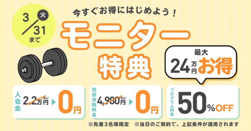 ※当日のご契約で、入会金¥22,000-/初回体験料¥4,980-が無料