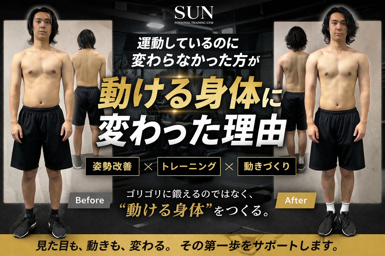 「肩こりがつらい」「猫背を直したい」そんなお悩み、SUNが解決します。まずは初回体験で、体感してみませんか?「変わるきっかけ」を、一緒に作りましょう。お気軽にご予約ください!